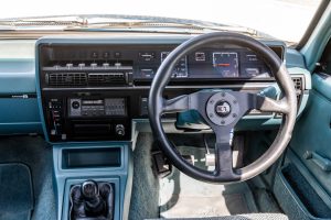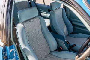 Finished in Formula Blue with white Group A decals, the light blue interior retains its factory-fitted Scheel sports seats, Peter Brock-branded radio cassette player, and leather-trimmed Momo steering wheel. The car rides on the correct 16-inch ‘Aero’ alloy wheels and features Group 3 components such as Bilstein suspension, a race-bred front air dam, and a rear deck lid spoiler.